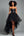 Esparguete Correias Preto Alto Baixo Babado Vestido Formal Longo