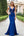 Royal Blue Satin Deep V-Neck A-Line Vestido de baile longo com apliques