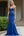 Royal Blue Bainha V Neck Lace frisado longo vestido de baile com fenda