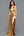 Vestido de Gala de Espaguete Dourado Metálico com Fenda Alta