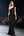 Preto Branco Cetim Deep V-Neck Gala Dress