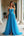 Uma linha azul sem alças plissado longo vestido de baile com fenda
