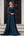 Dusty Blue assimétrico V pescoço babado meia manga mãe do vestido de noiva