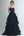 Querida Alça de Esparguete da Marinha Vestido de Bola de Cetim Longo com Bolsos Invisíveis Laterais