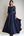 Apliques Florais Tule Azul Escuro Mangas Longas Roupa Mãe da Noiva
