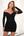 Sparkly Preto V Neck Bodycon Mangas Longas Vestido Homecoming com frisos