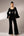 Macacão de mangas longas de lantejoulas pretas com cinto