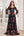 Uma linha de mangas compridas estampa floral preto longo vestido de baile