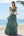Vestido de dama de honra longo de pescoço quadrado verde escuro com mangas curtas