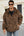 Café Leopard Faux Fur Homens Casaco de inverno com Bolsos