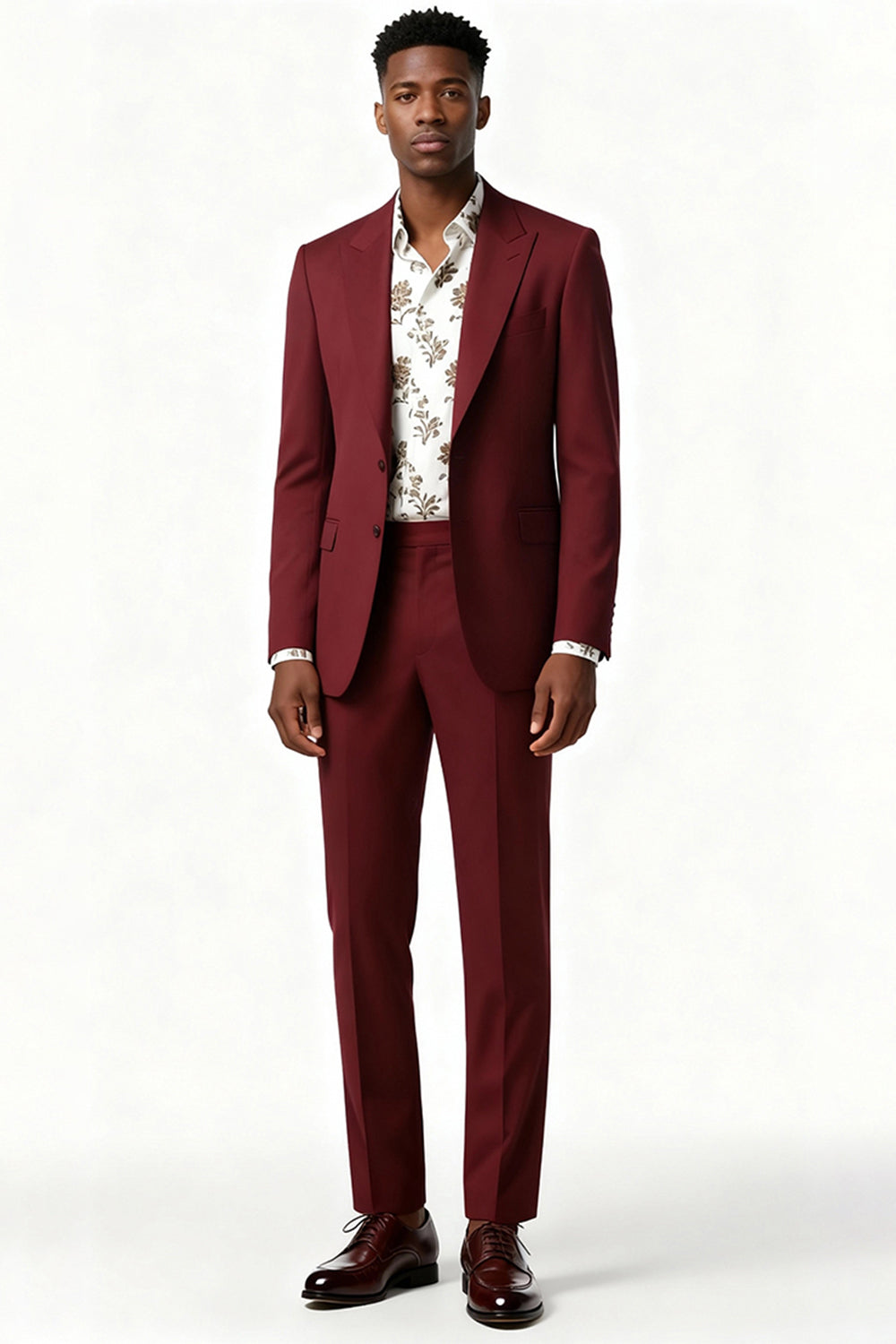 Borgonha Pico Lapela 2 Peças Single Breasted Homens Ternos