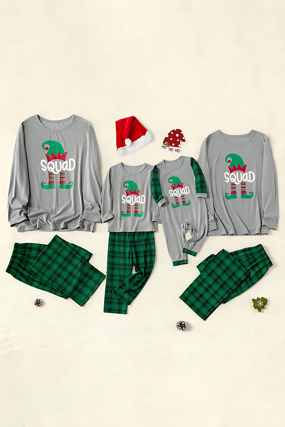 Cinzento Verde Xadrez Estampa Natal Família Combinando Conjunto de Pijamas