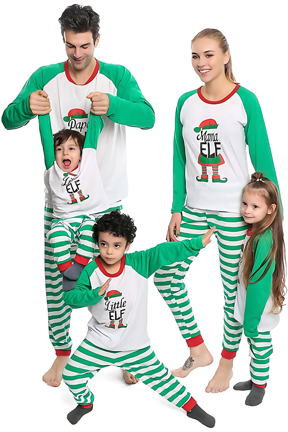 Listras verdes imprimir Natal Família combinando conjunto de pijamas