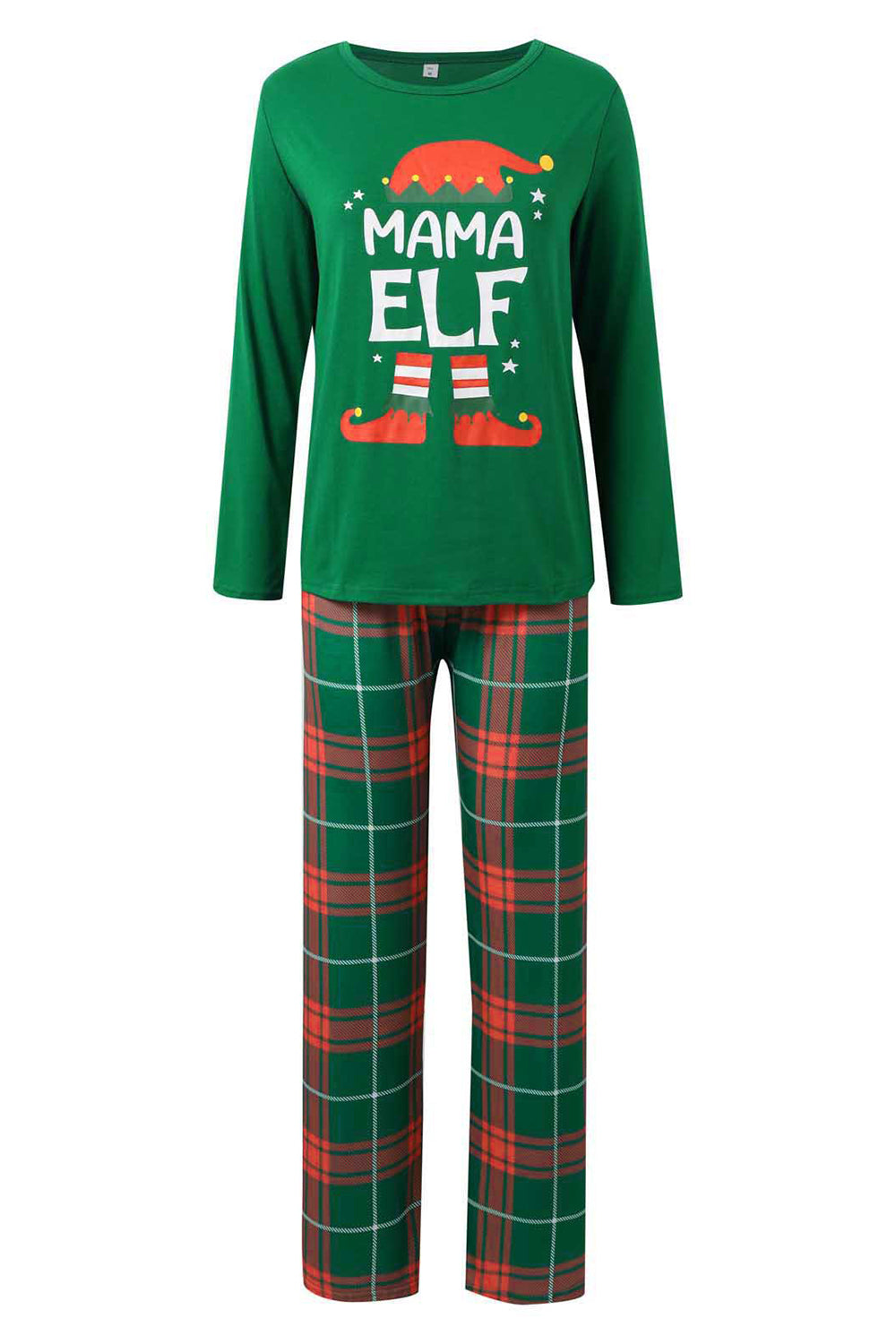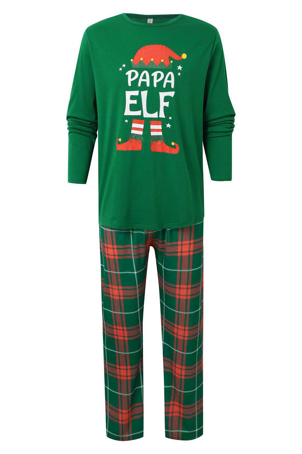 Verde escuro pescoço redondo Natal xadrez família combinando conjunto de pijamas
