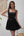 Vestido de festa curto preto sem alças com mangas destacáveis