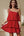 Vestido Verão Decote em V Linha-A Midi Ponto Branco Vermelho Chiffon
