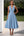 Vestido Verão Mangas Curtas Midi Ponto Branco Azul Linha-A