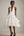 Cetim Branco Decote em V Midi Vestidos Cerimónia com Cinto
