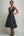 Vestido Verão Decote em V Linha-A Midi Chiffon Ponto Preto Branco
