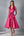 Vestidos Para Casamento Convidada Decote em V Midi Fúcsia Cetim Linha-A
