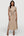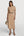 Camel cetim bodycon midi vestido de trabalho com mangas