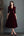 Borgonha Uma Linha Veludo V-Neck Vestido de Trabalho com Meias Mangas