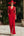 Vestido Vermelho de Mãe da Noiva com decote longo em V aplicado e fenda