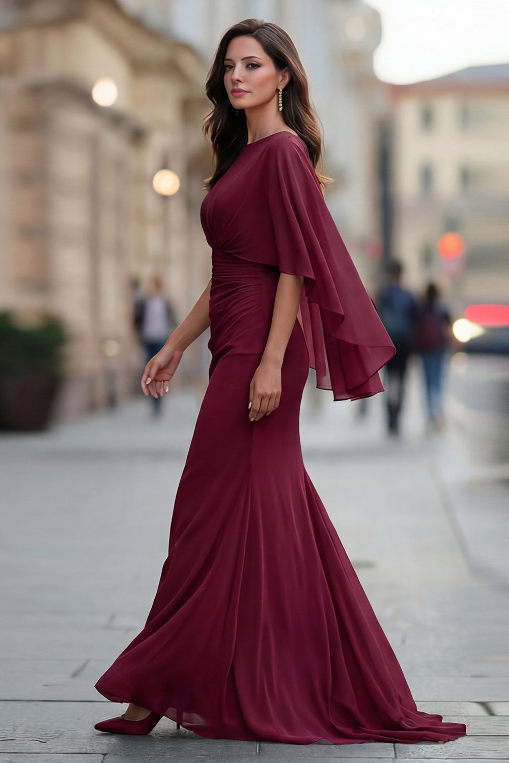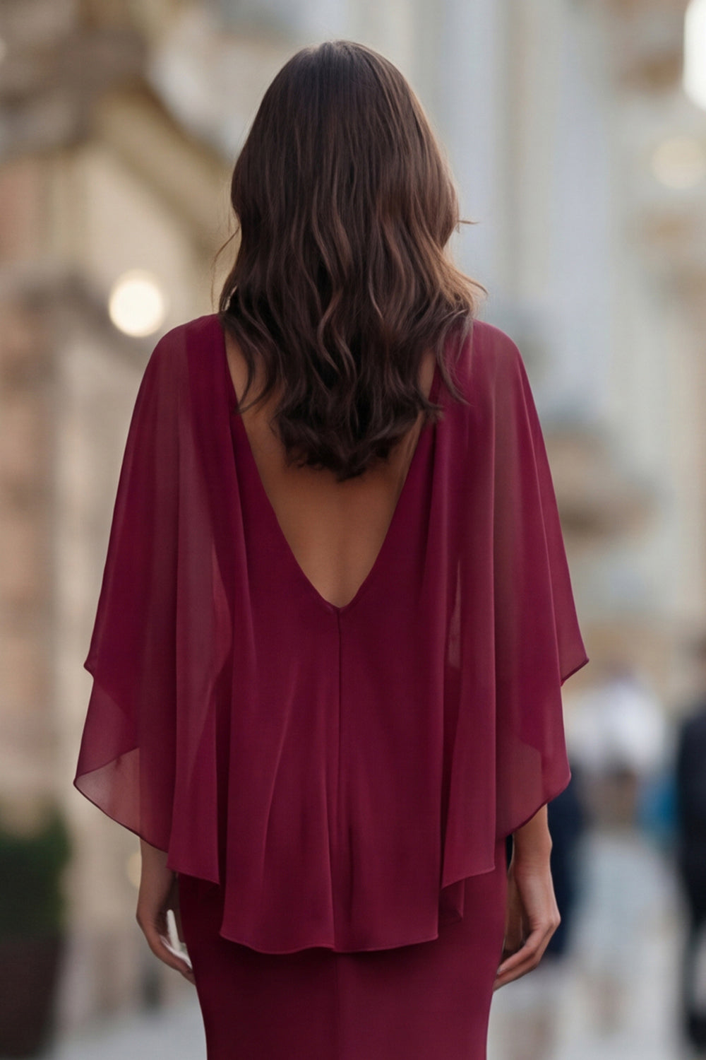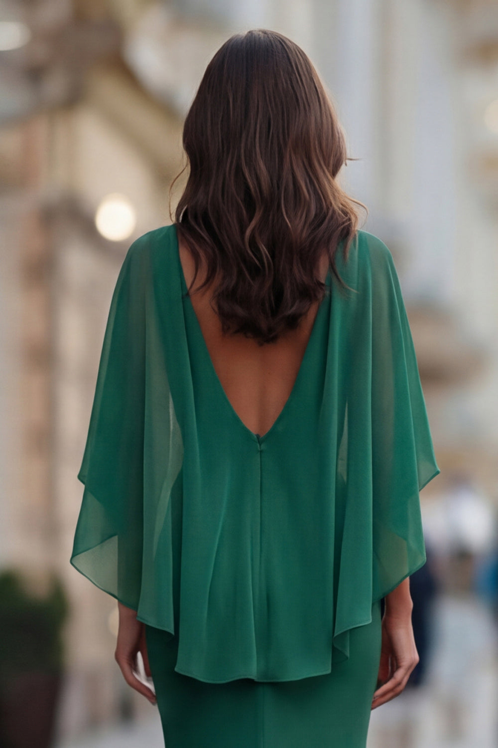 Vestido Preto Sereia Comprido com Decote em Bico para Mãe da Noiva