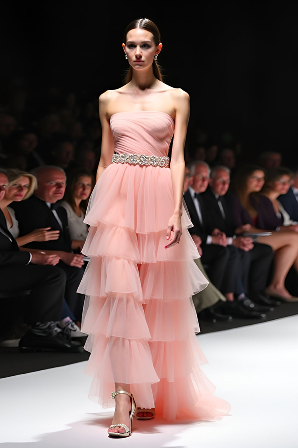 Uma linha Blush Rufled Strapless Long Gala Dress