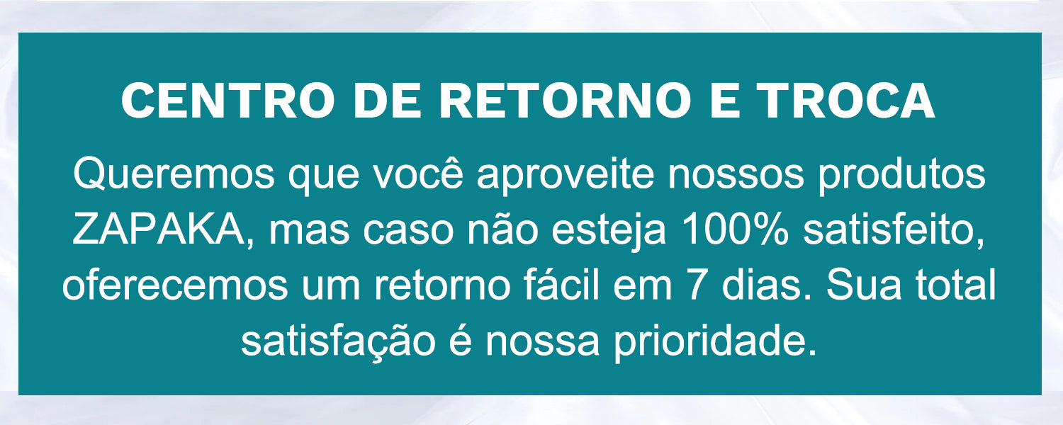 ZAPAKA emitirá um reembolso total, incluindo frete para quaisquer itens danificados, defeituosos ou enviados incorretamente. Se o seu item chegar danificado ou com defeito, entre em contato com nossa equipe de Atendimento ao Cliente diretamente para obter assistência no processamento de sua devolução.