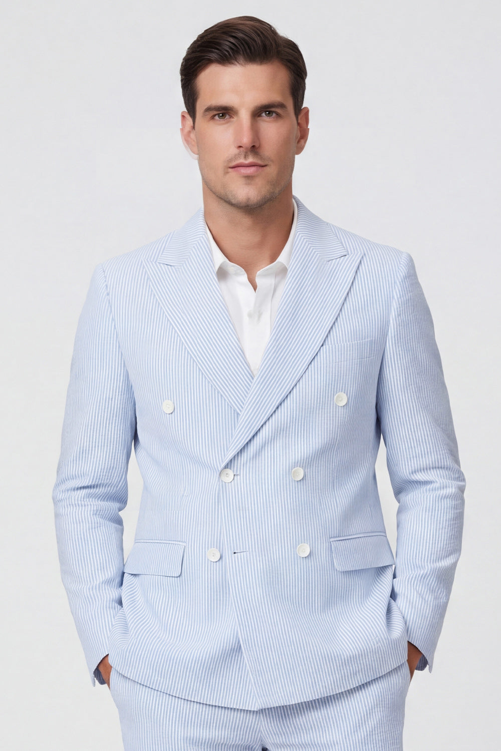 Fatos de festa masculinos de 2 peças, lapela azul claro, abotoamento duplo