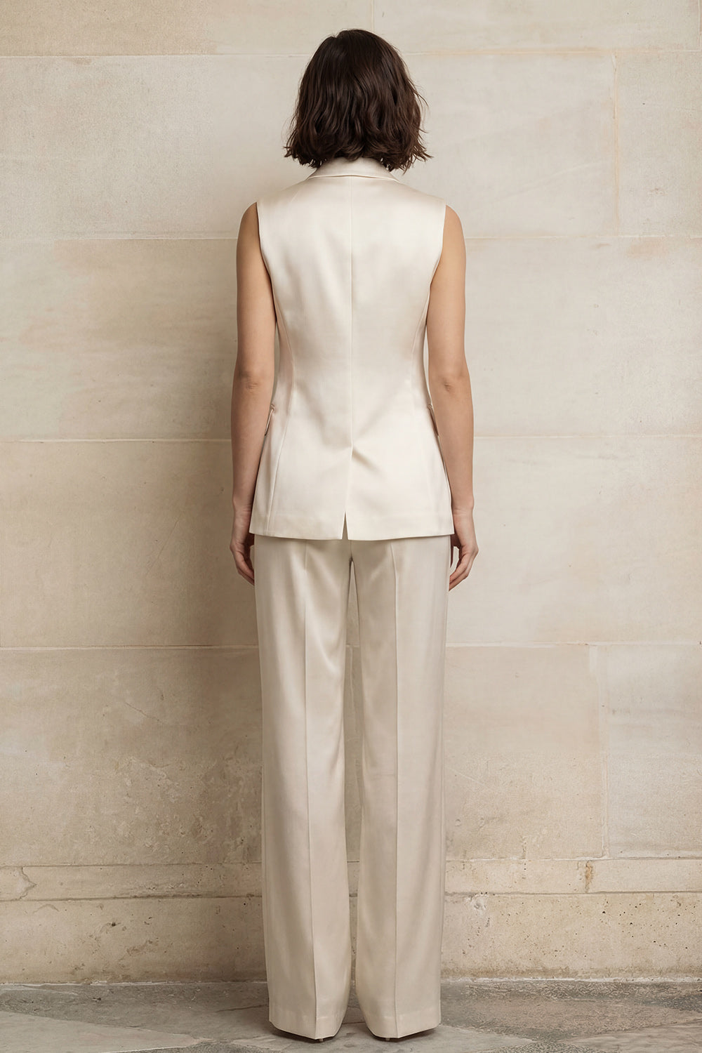 Fatos de mulher de 2 peças, com lapela de peito simples, de 2 peças, sem mangas