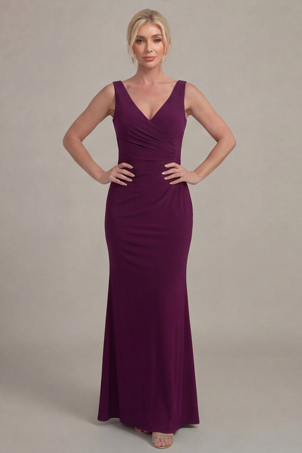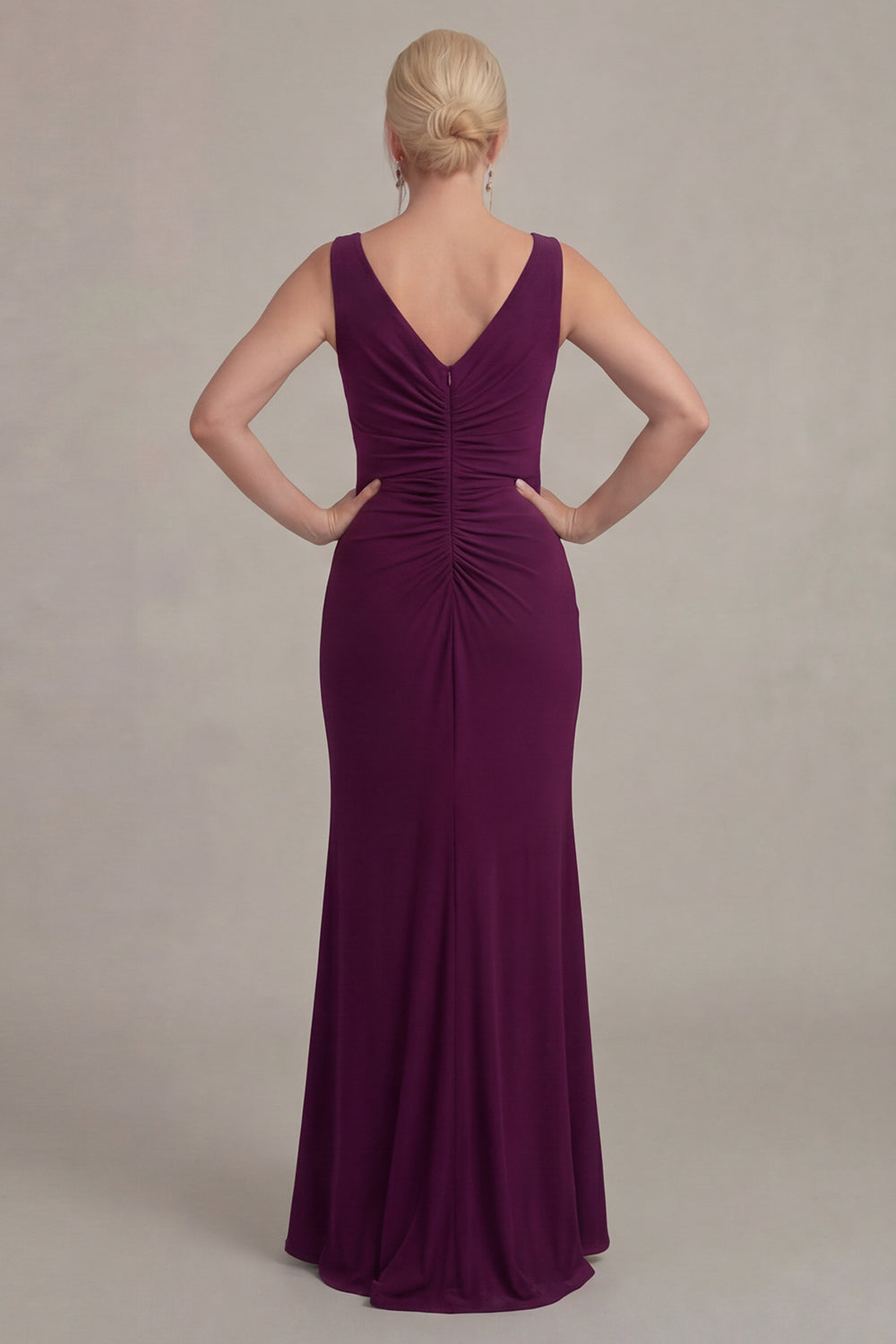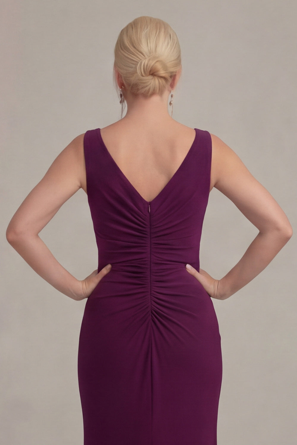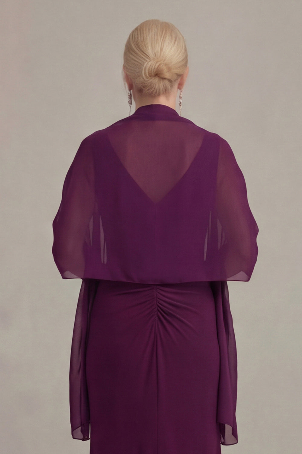 Vestido de Mãe da Noiva com decote V e Capa de Uva, Bainha de Uva